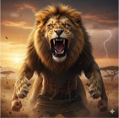「彼は怒るとライオンだ」(彼は怒ると、まるでライオンのように怒り狂って手が付けられない・・・といった意味をまるでライオンではなくライオンと言い切ってしまう修辞法)を入力してみると