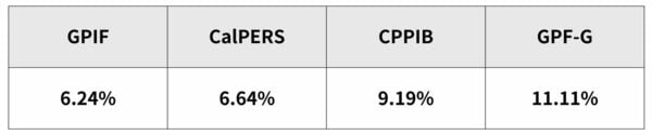 これらの機関の2014年度から2024年度までの平均リターンを比較すると、次のようになります。
