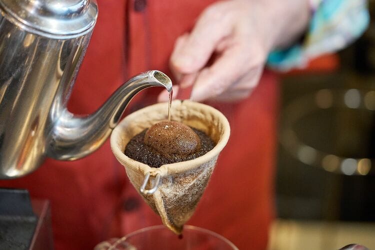 分厚いネルに少しずつお湯が注がれ、泡立つ様子を眺める