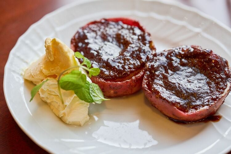 そんなこだわりの珈琲とともに味わいたいのが、良江さん手作りの冬季限定メニュー「焼きリンゴ」だ。当初はアップルパイを考えていたが、他店と同じになってしまうため変更したという。りんご本来の香りと甘みを引き出すため、生のまま30分かけてじっくり焼き上げ、熱々のシナモンバターとともに供される贅沢な一皿である。