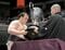 大相撲初場所で2場所連続優勝を果たし、日本相撲協会の八角理事長(右)から賜杯を受け取る安青錦。新大関での優勝は史上9人目の快挙となった=代表撮影(写真:共同通信社)