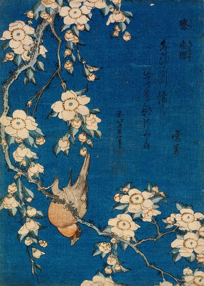 葛飾北斎《「鷽 垂桜」》中判錦絵 天保5年(1834)頃 RISD美術館蔵 Courtesy of the Museum of Art, Rhode Island School of Design, ProvidenceGift of Mrs. John D. Rockefeller, Jr.