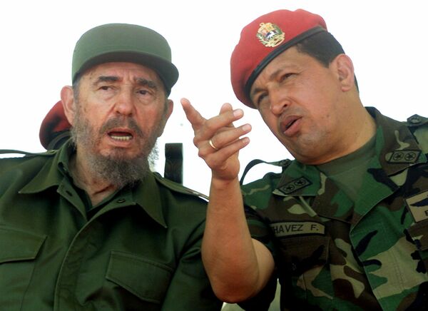 キューバ革命を主導したフィデル・カストロ氏(左)とボリバル革命を起こしたウーゴ・チャベス氏(右)(写真:ロイター/アフロ)