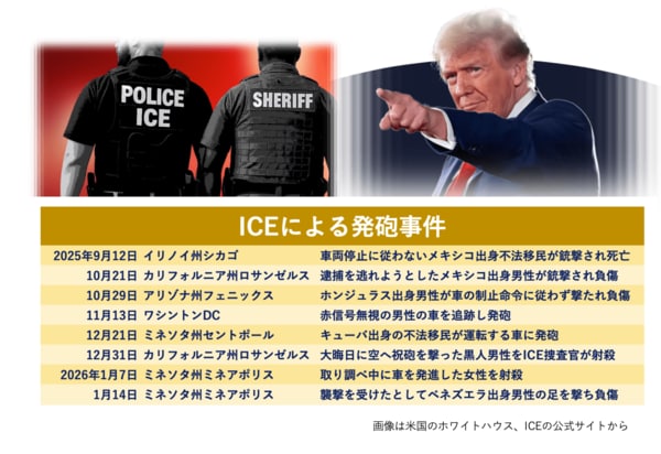 第2次トランプ政権の発足から1年。米国では今、「移民・税関捜査局(ICE: Immigration and Customs Enforcement)」職員による相次ぐ発砲事件が大問題となっています。中西部ミネソタ州ミネアポリスでは、不法移民とは無関係の市民がICE職員に撃たれ、死亡する事件も発生しました。米国民を震撼させるICEとは、どんな組織なのでしょうか。相次ぐ事件の背景には何があるのでしょうか。やさしく解説します。