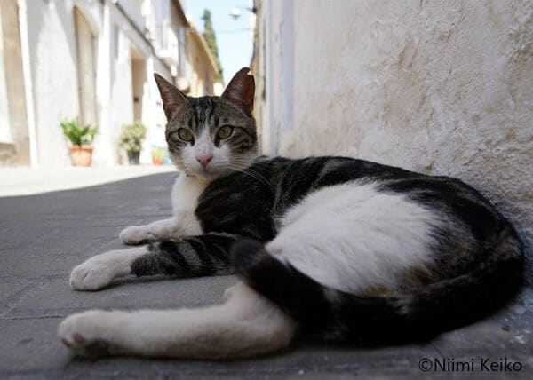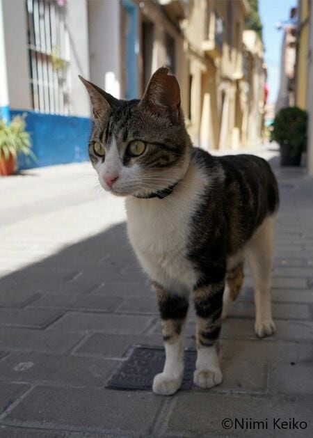 住宅地に「バルセロナ通り」という名の路地がありました。その大都会の名称らしからぬ静かな通りの日陰にたたずんでいる猫がいました。