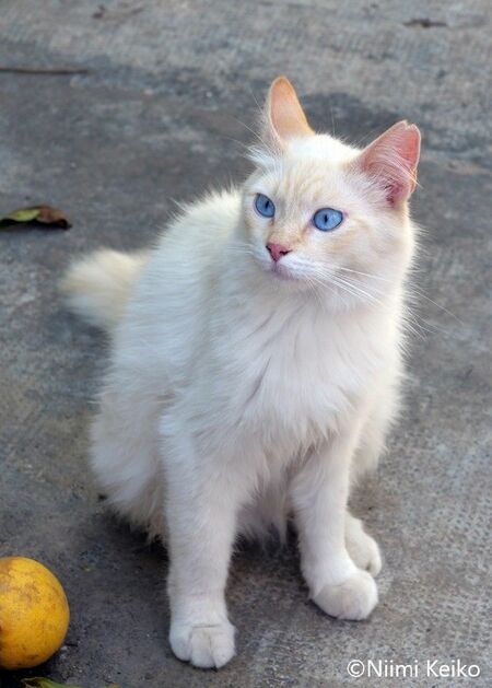そんな転がるオレンジを見ていた猫です。植木鉢の陰から見ていたのですが、オレンジが視界から消えたとたん、思わず飛び出してきました。