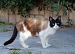 さすがはオレンジの里、バレンシア。歩道を歩いていたときに、庭の木からオレンジが落ちて転がってきました。その家の猫が、転がるオレンジを止めました。