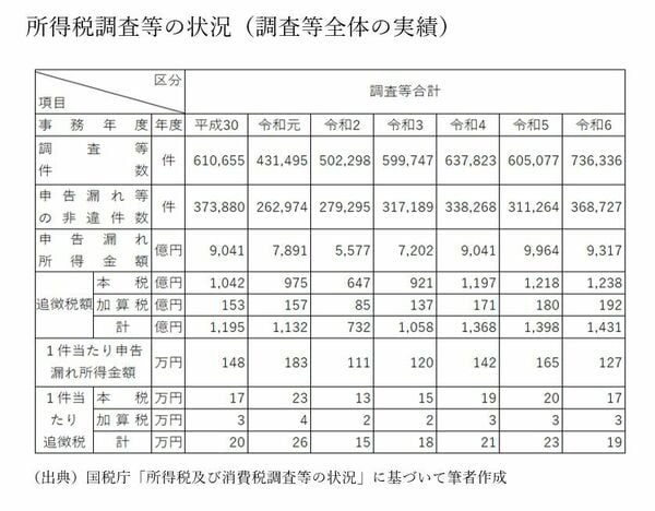 こうした調査と接触を合わせた「調査等」の実績をみると、令和6事務年度の追徴税額は1431億円と過去最高を記録した。申告漏れ所得金額や非違件数も高水準にあり、国税庁は「調査選定にAIを活用するなど、効率的かつ的確に調査等を行った結果、『調査等』による追徴税額の総額が過去最高となった」と説明し、AI活用の成果を強調する姿勢を鮮明にしている。