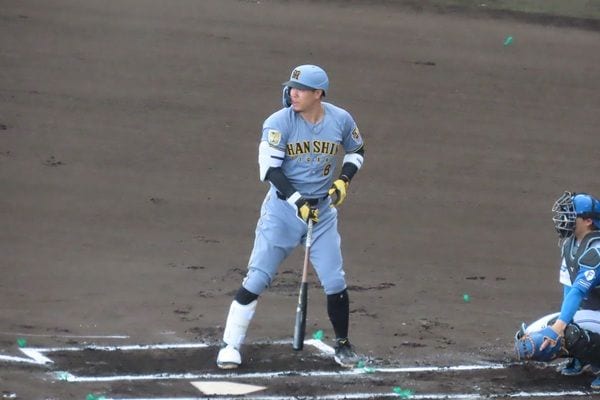練習試合に登場した阪神の佐藤輝明(筆者撮影)