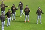とはいっても、この時期の選手起用はまだお試しだ。投手たちは1、2回で降板し、次から次へと投手が上がる。中には「三桁」の背番号の育成選手もいる。彼らは生き残りをかけてプレーしている。