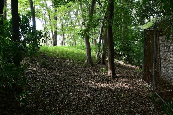 土塁の外側は空堀となっていて、台地続きを遮断している