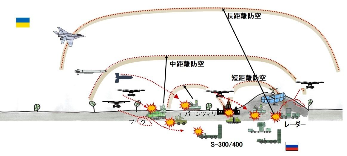 図1 ロシアの防空システムとウクライナの各種ミサイル等攻撃(イメージ)