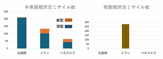 グラフ 北朝鮮・イラン・ベネズエラの防空ミサイル保有数