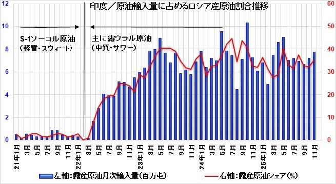 下記グラフをご覧ください。開戦後、インド向け原油輸出が急増していることが一目瞭然です。