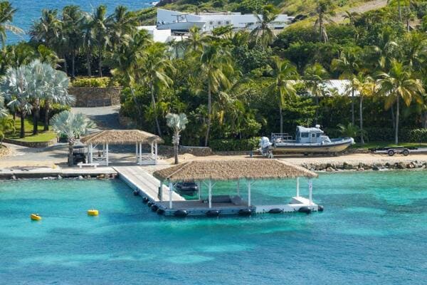 米領ヴァージン諸島にある、エプスタイン元被告がかつて所有していたリトル・セント・ジェームズ島(2025年11月29日撮影、写真:ロイター/アフロ)