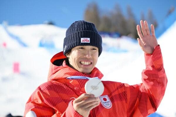 ミラノ・コルティナ五輪男子デュアルモーグルで銀メダルを獲得した堀島行真選手(2月15日、写真:松尾/アフロスポーツ)