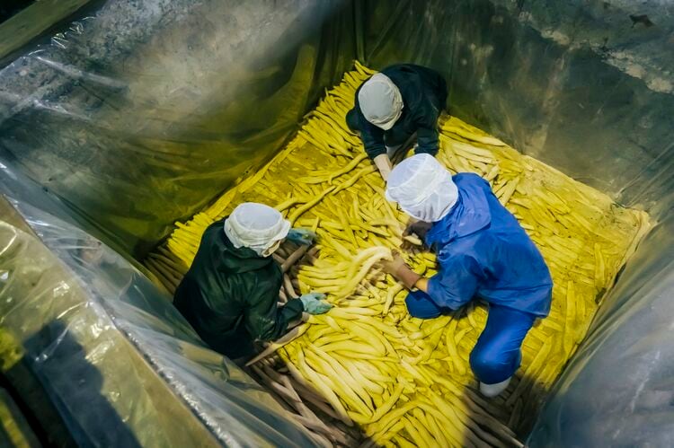 3人がかりで巨大な穴にだいこんを敷き詰める