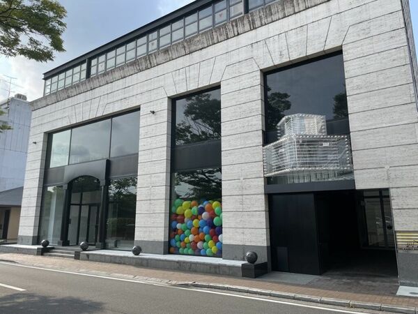 「JINS賞」を受賞した岡山市の「ラビットホール」。バブル期の建物のリノベーションだ。建設当時の姿を残す外観にも、展示されたアートの気配がにじみ出る(写真:白井良邦)