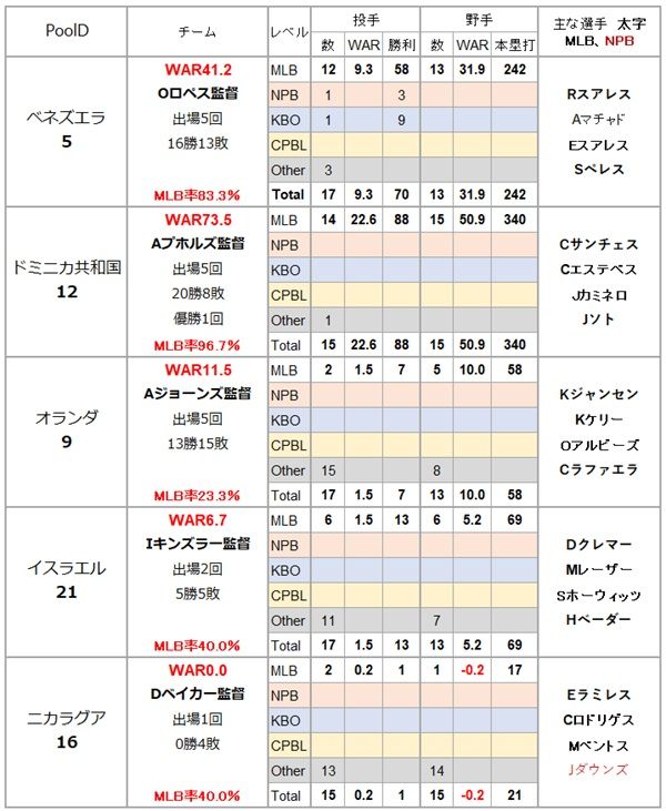 国際大会の成績が良くないため、WBSCの順位は低いが、MLBに大物選手を多数輩出しているベネズエラとドミニカ共和国が激突する「死のプール」だ。