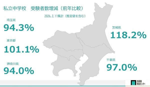 神奈川県では、これまでの“サンデーショック”の年には、2月1日から2日に入試日を移行してきた最難関女子校のフェリス女学院が、この2026年は2月1日入試を変えなかったという従来と違った動きがありました。しかし、やはり東京都内と同様に、2月1日に入試を行ったフェリス女学院、横浜雙葉①、洗足学園①などは志願者が増加、2月2日に入試日を移した横浜共立学園Aの志願者は増加しました。
