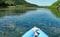 ダムのある球磨川本流(右)に合流する透明度の高い川辺川(左)(写真提供:清流球磨川・川辺川を未来に手渡す流域郡市民の会)