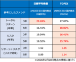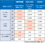 当ファンドは、信託報酬が年0.693%と若干高めであるものの、トータルリターン、リスク、リスク効率は日経平均株価・TOPIXと比べてかなり優秀です。