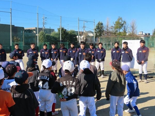 1月下旬の日曜日、神奈川県立多摩高校(川崎市)で野球部員による「野球教室」が行われた。おりしも寒波が襲来し、寒風の吹きすさぶ厳しい天候ではあったが、快晴の空のもと、グラウンドには多くの小学生たちが集まった。