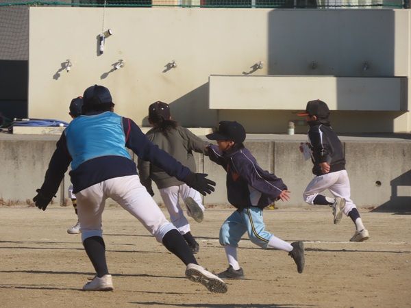 高校生と子どもたちの顔合わせ、準備体操が終わるとウォーミングアップとして「ドロケイ」がはじまった。泥棒と刑事の鬼ごっこ、こうした野球教室では定番となっている。選手が刑事になって、子どもたちを追いかける。筆者はいつも思うが、これほど盛り上がるアップはないだろう。