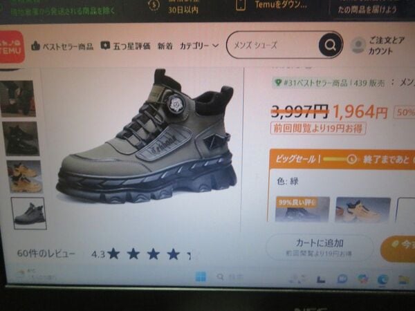 騙されてもいいから、一足注文してみるかと思った(このような欲に負ける心理が、かれらの狙いか)。騙されたら騙されたで、結果報告を書けばいい。