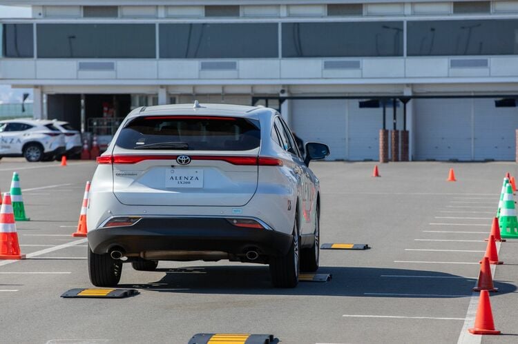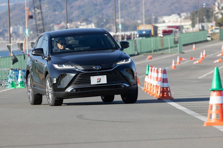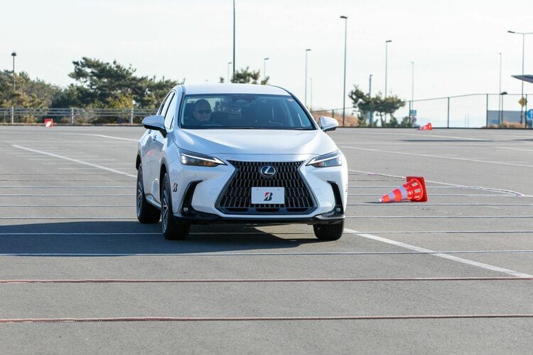 最初に試したのは、特設会場内でのスラロームや段差乗り越えなど。これをアレンザ LX200とアレンザ LX100で比較試乗し、その感触を掴むというものである。車両はレクサスNX350hとトヨタ・ハリアー。まずはアレンザ LX100を履かせたレクサスNX350hに試乗し、続いてアレンザ LX200を履かせた別のレクサスNX350hに試乗。さらに、これと同じことをハリアでも行った。なお、グレードや車両のコンディションはまったく同じという前提で試乗した。