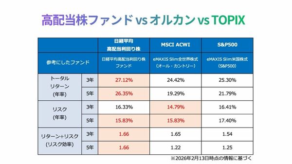日本の高配当株ファンドがオルカン・S&P500を超えていた