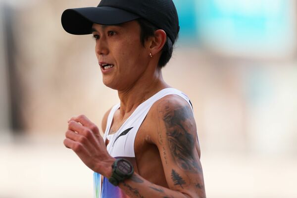 橋本は26.5km付近で第1集団に飲み込まれると、34km付近で日本人トップから陥落。終盤は苦しい走りとなり、2時間11分21秒の39位でレースを終えて、悔し涙を流した。