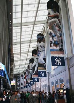筆者も、開幕から間もない新スタジアムに出掛けてみた。ベーブ・ルース、ルー・ゲーリック、ジョー・ディマジオ、ミッキー・マントルら・・・。往年の名プレーヤーの巨大ポスターが飾られた回廊を抜けると、緑鮮やかな芝生が目に飛び込んでくる。開放感は抜群だ。