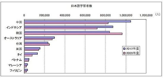 世界で高まる日本語人気、教育環境は中韓に出遅れ 外国人留学生による刺激を若者に~どうすればグローバル人材の育成ができるのか(35) 村田 博信 著者フォロー フォロー中 2014.7.24(木) シェア246 Tweet 1 2 3 4 出所:国際交流基金 ギャラリーページへ 出所:国際交流基金 ギャラリーページへ 日本語学習熱を後押しする背景 さらには昨今の企業のグローバル展開が追い風になりつつあります。 残り1978文字 ここからは、JBpress Premium 限定です。 会員ログイン JBpress Premiumを無料で試す 初月無料 税込550円/月 全記事読み放題! カンタン登録!続けて記事をお読みください。詳細はこちら Premium会員に人気の記事 【自民党総裁選】小泉純一郎はルール変更追い風に初勝利、強者・権力者が「ゴールポスト」を動かした歴史 参政党の演説に在日コリアン3世の私が共感してしまった理由 AIが「働きたくても働けない人」と「働かなくてもいい人」を生成し始めた シェア246 Tweet あわせてお読みください 米国の大学を侵食する中国の「孔子学院」 全米最大級の教授組織が抗議声明 古森 義久 新入生9割が中国人、超異色の日本経済大学 「全入」時代にあえて東京進出を果たした理由とは 貝田 尚重 総合グローバル学部開設に見る、上智大のグローバル人材育成の「本気」 グローバルとローカルの双方向の視点を持ったリーダーを養成 働き方と教育 バックナンバー 一覧 上司からの連絡に邪魔されず休日を穏やかに過ごすには、「つながらない権利」より「レスポンス主導権」の確保が必要 川上 敬太郎 消えゆく「役職定年」、年齢による強制的な降格と減給の仕組みとはなんだったのか フロントラインプレス それでも退職代行・引き止めサービスが活況を呈する背景と問題点、会社と社員の意思疎通はなぜ壊れるのか 川上 敬太郎 メンタルダウンから復活、元アパレルマーチャンダイザーがついに「手触りのある実感」を得られた仕事とは 韓光勲 高市発言で今も物議を醸す「ワークライフバランス」の意義、労働時間規制の緩和は「長時間労働の推奨」につながるか 川上 敬太郎 職場の“不機嫌ハラスメント”はどこまで許容範囲なのか、周囲を不快にさせる加害者「4タイプ」と効果的な対処法 川上 敬太郎 フォロー機能について フォロー機能とは、指定した著者の新着記事の通知を受け取れる機能です。 フォローした著者の新着記事があるとヘッダー(ページ上部)のフォロー記事アイコンに赤丸で通知されます。 フォローした著者の一覧はマイページで確認できます。 ※フォロー機能は無料会員と有料会員の方のみ使用可能な機能です。 設定方法 記事ページのタイトル下にある「フォローする」アイコンをクリックするとその記事の著者をフォローできます。 確認方法 フォロー中の著者を確認したい場合、ヘッダーのマイページアイコンからマイページを開くことで確認できます。 解除方法 フォローを解除する際は、マイページのフォロー中の著者一覧から「フォロー中」アイコンをクリック、または解除したい著者の記事を開き、タイトル下にある「フォロー中」アイコンをクリックすることで解除できます。 ご登録 ログイン