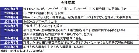 同社の前身は世界的医薬品大手である米ファイザーの日本法人の中央研究所だ。同研究所はファイザーの探索研究拠点として、「疼痛」「消化器疾患」の領域を中核に創薬研究を行ってきたが、2007年に閉鎖が決定された。