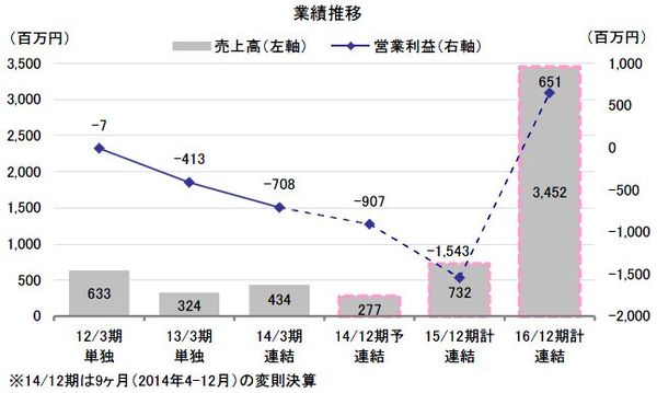 なお、完全ヒトADLib®システムの状況に関しては、国内外の大手製薬を含む複数の企業から問い合わせを受けている段階にあり、今後も引き続き抗体取得の技術改良を進めながら、究極のヒト抗体作製システムの構築の実現を目指していく。2016年12月期には技術導出する予定で、これを主因として2016年12月の連結業績は売上高3,452百万円、営業利益651百万円と初の黒字化を見込んでいる。