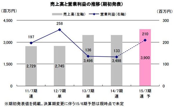 持株会社体制への移行(2015年7月)に伴い、決算期を従来の7月決算から6月決算に変更する。足元の受注状況はモバイル領域のIT投資活発化を背景に堅調に推移している。現在、集計中の第2四半期累計業績は前年同期比(前年同期は単独決算)で増収となり、売上高は過去最高を目指す模様だ。利益面については、課題であった不採算プロジェクトの低減は進んでいるが、依然として発生するなど、プロジェクト管理体制にはまだ改善の余地は残ったままとなっている。このため、同社は2月よりインドIT企業のCEO経験者を執行役員として採用し、開発体制の強化を図っていく方針。2016年6月期以降は、米国のカジノ市場向けモバイル電子マネー事業の立ち上がりや、EBEの連結業績がフル寄与することにより、連結業績は大幅増収増益が見込まれる。