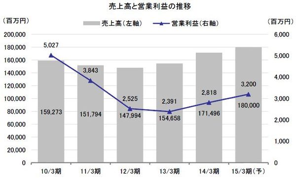 2015年3月期の業績は、売上高180,000百万円(前年比5.0%増)、営業利益3,200百万円(同13.6%増)、経常利益3,500百万円(同11.3%増)、当期純利益2,200百万円(同24.8%増)が予想されている。期中受注・完工の案件を取ることで上期の遅れを取戻し、通期では期初予想を達成するよう取組んでいるが、既に第3四半期で前年同期を上回るペースになってきたことから、この予想達成の可能性は高そうだ。