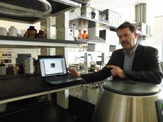 ブドウ栽培・醸造学科の研究施設「ロバート・モンダビ・インスティ テュート」中庭で語るブルトン教授