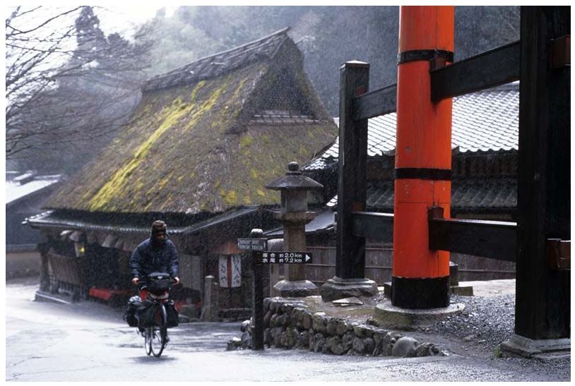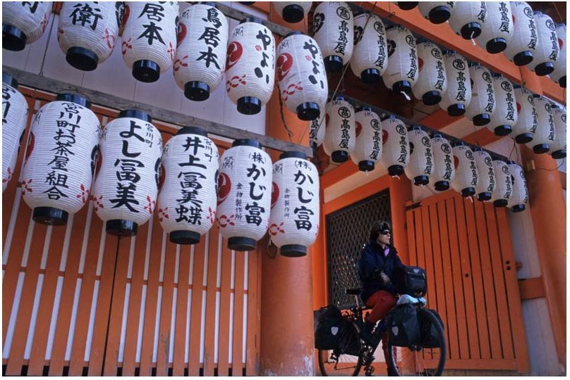 京都にて。撮影してきた大量の写真も積み、自転車は数十キログラムの重量になった