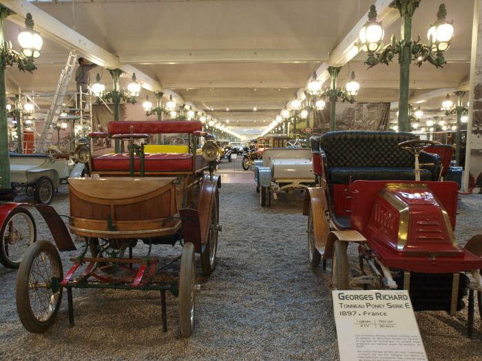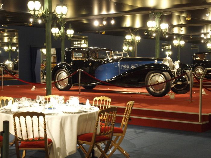 1万7000平方メートルの空間にずらりと並んだクラシックカー。等間隔に配されたランプは、パリで最も優美な橋と言われるアレクサンドル3世橋と同じスタイルのもの