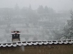 アレッツォからさらに田園を分け入ってゆくと、雪は本降りに