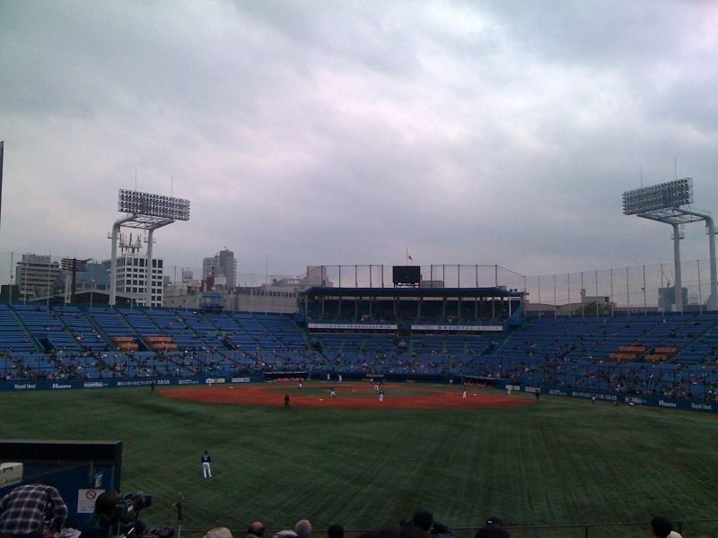 今年4月21日に神宮球場でのヤクルト中日戦。節電のためデイゲーム開催されたが、ギリギリまで照明灯はつかず、正直言って暗く見えづらかった