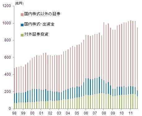 機関投資家の資産配分(日本)  出所:日本銀行、武者リサーチ