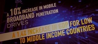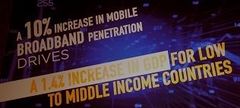 モバイルブロードバンド普及率が10%増加すると、新興国ではGDPを1.4%増やす効果があると謳うGSMA(MWC主催者)のメッセージ