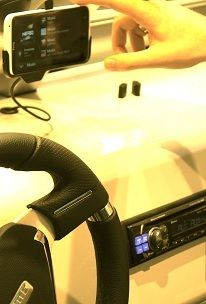 中国メーカーHTC社は、スマートフォンの車載利用の展示をしていた