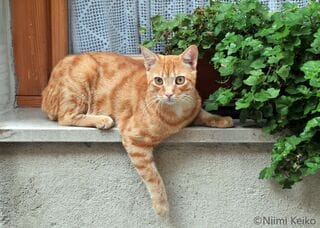 「みんなでかわいがっている人気者なの」それを聞いて猫はゆっくりとノビをし、挨拶してくれた