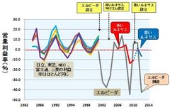 図3 日立、三菱、NECの3社合計、および東芝、富士通の半導体売上高 (出所:電子ジャーナル『半導体データブック』を基に筆者作成)