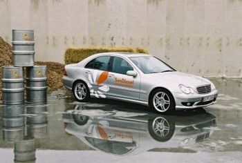 ヨーロッパではエネルギー企業や自動車メーカー、公的機関などが、温室効果ガスを増やさない「グリーンフューエル」の開発に積極的に取り組んでいる。それも食用作物と競合しないような植物、例えばこの写真に示すような木質チップや植物繊維(セルロース)から化学的に作り出すプロセスを「将来の本命」と捉えている。(写真提供:Daimler)