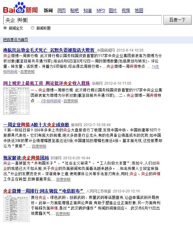 「中央企業 ネット世論」で検索した結果によれば、こうしたニュースは最近特に増えている